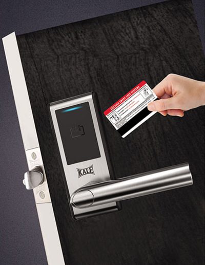Компактність та надійність відображаються в замках Кале серії із засувкою. Цей замок на сам перед підходить для офісів які мають бажання усучаснити і поміняти свої старі круглі замки на нові для покращення контролю. Втілення надійності, безпеки, легкості в користуванні та доступності це замки Кале із засувкою готельного типу. Замки Кале працюють зі спеціальним программним забезпеченням, яке регулює роботу замка та інформацію яка знаходиться у його памяті. Більше не треба прокладати ні яких дротів для замка, все працює автономно та зберігає біля 200 останніх подій доступ до яких є лише у адміністратора. За допомогою цього можна відстежувати хто та коли потряпляв у приміщення, контролювати кількість карток, користувачів, обмежувати або розширяти права доступу.